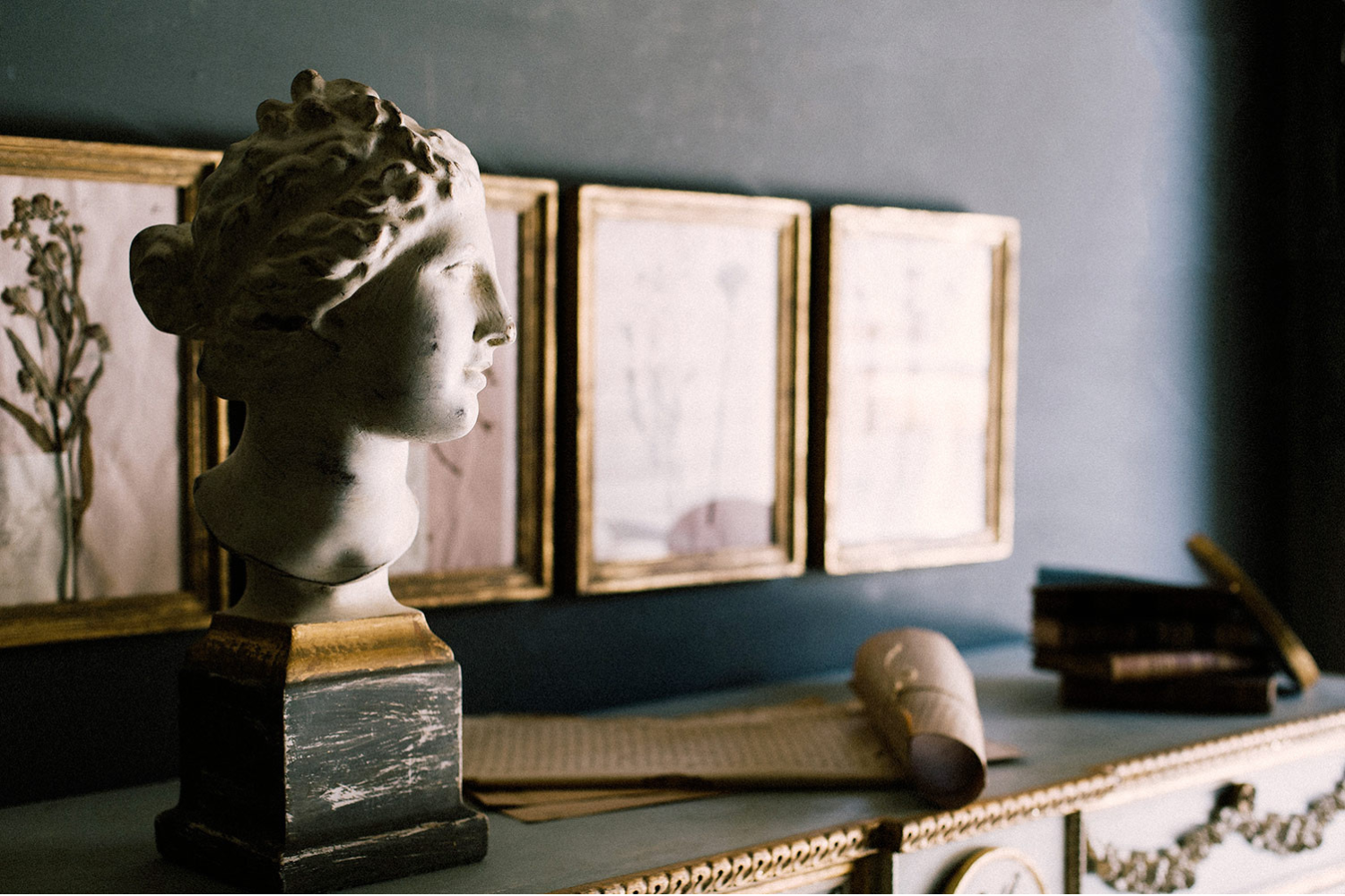 The brand was born in 2015 when founder Elizabeth Jones, who was living in London at the time, became inspired by the treasure-trove of gorgeous, affordable, French-inspired furniture available in the European market. The photo here, taken in 2014, is of a vignette of French antiques at a market in London.