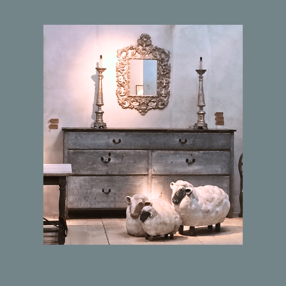 The brand was born in 2015 when founder Elizabeth Jones, who was living in London at the time, became inspired by the treasure-trove of gorgeous, affordable, French-inspired furniture available in the European market. The photo here, taken in 2014, is of a vignette of French antiques at a market in London.