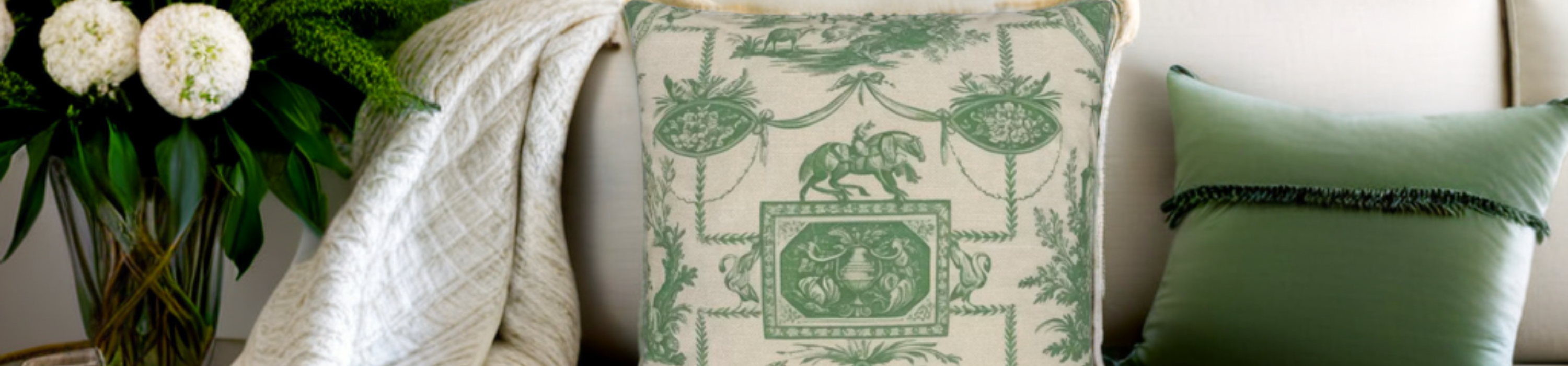 A finishing touch with unmistakable charm - Manoir’s pillows blend European textiles with refined craftsmanship. From Italian velvets trimmed in gold tassels to cotton-linen toiles de Jouy inspired by 18th-century artistry, each design is made to layer texture, color, and history. Elegant yet inviting, these French throw pillows bring a whisper of château living to modern interiors.