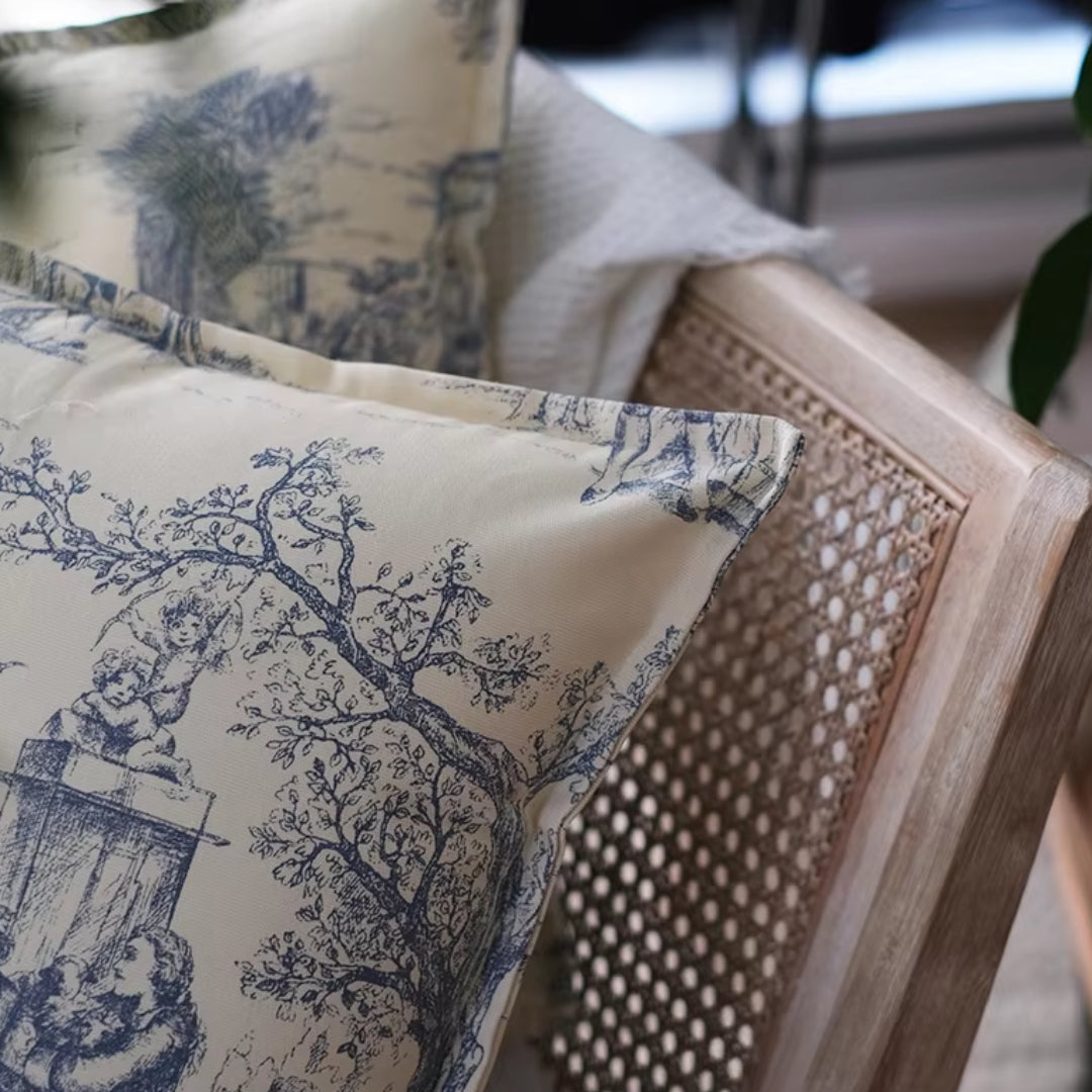 French Jacquard Woven Toile De Jouy Pillow Cover